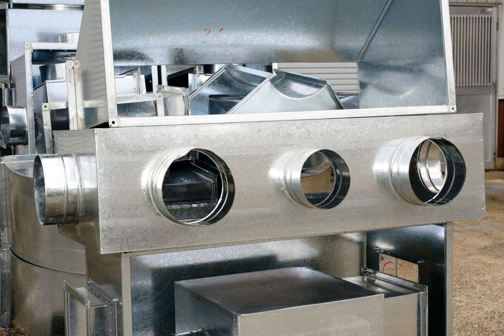 ダクトは主に空気や排煙、換気のために設置されます。建物内に空気を送ったり排出したりするための通路で、空調設備の一部として使われます。例えば、オフィスビルや工場では空調ダクトが天井内に張り巡らされ、室内の快適な空間づくりに貢献します。材質は鋼板や亜鉛メッキなどが一般的で、形状も四角や円形など種類があります。